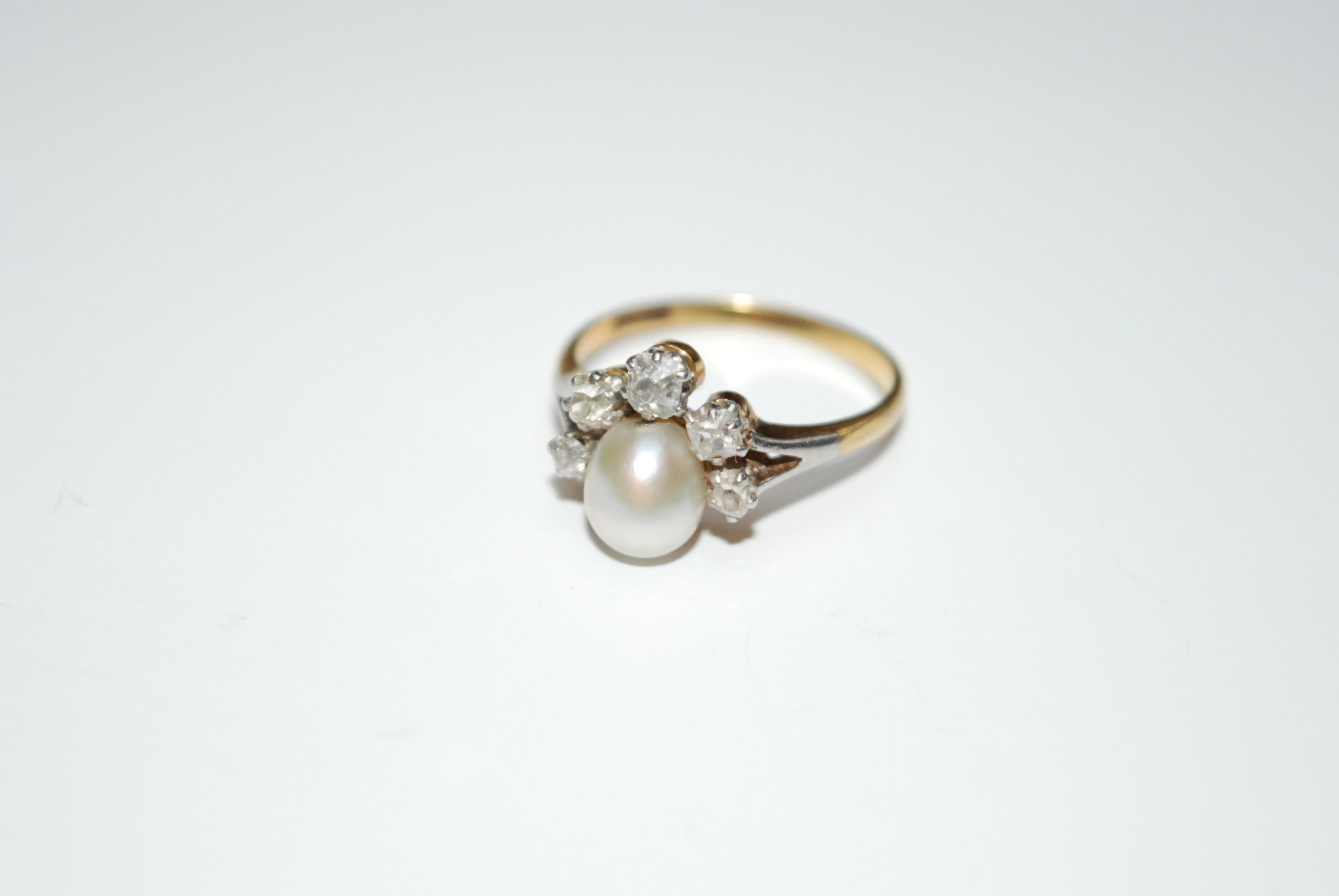 An Early 20th Century 18ct gold and platinum pearl and old-cut diamond ring.