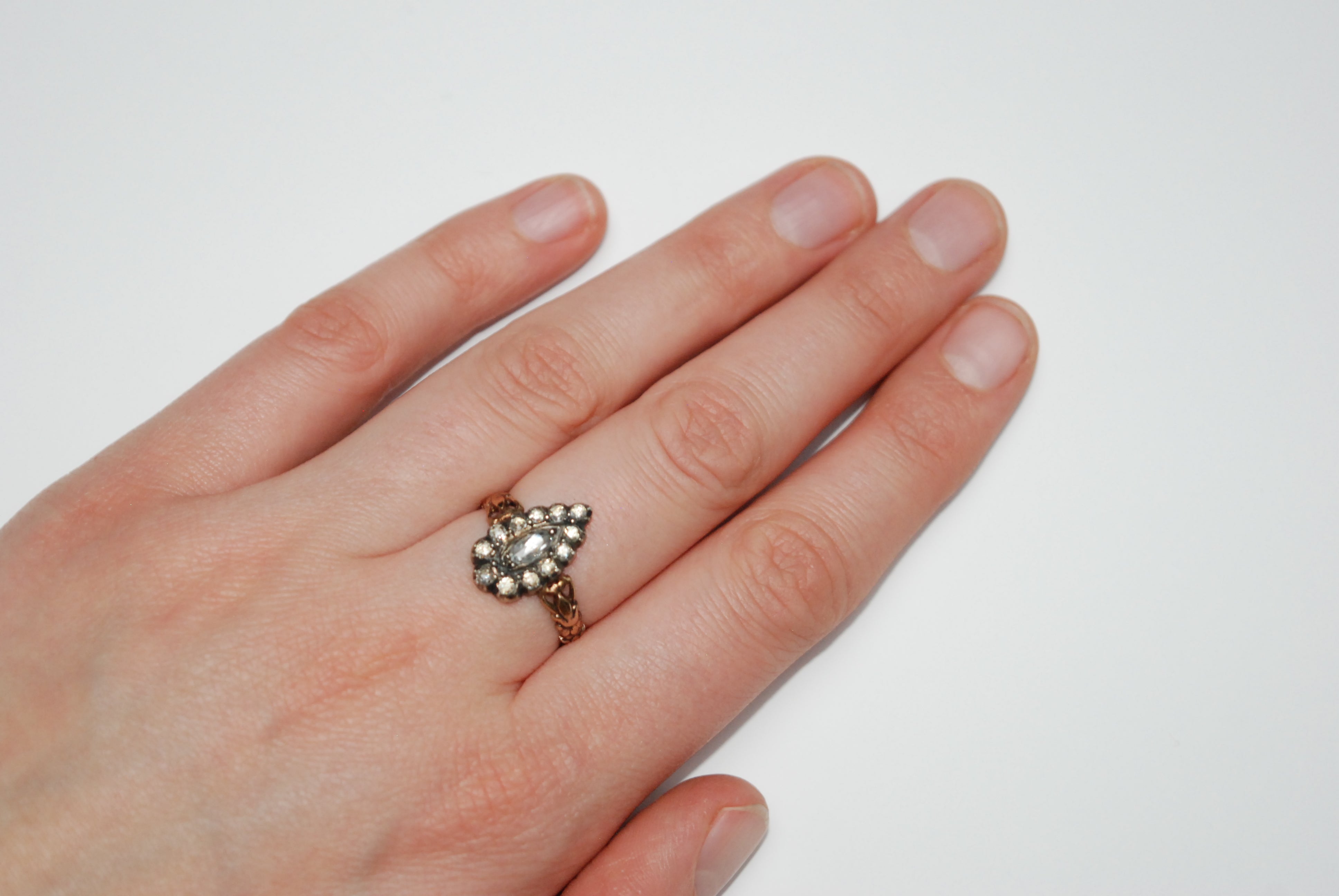 Georgian Rose Gold Marquise Diamond Ring
