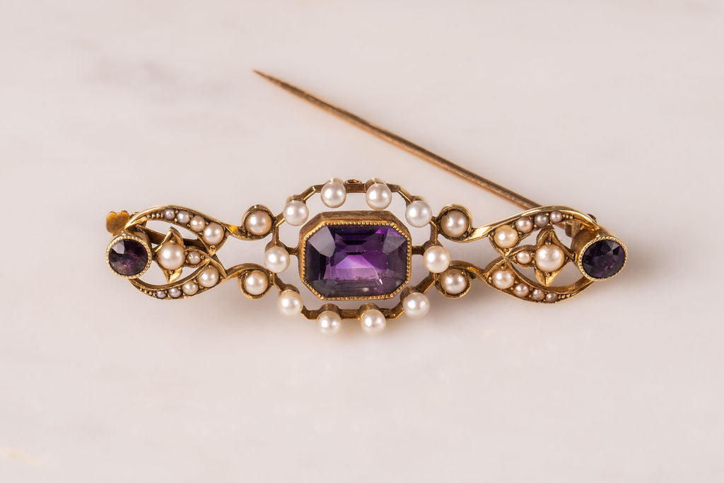 LaCloche Frères Diamond and Pearl Bar Brooch